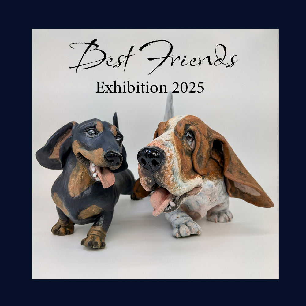 After a career as a professional graphic designer, she experimented with 3D materials and from there her passion for making animal sculptures grew. Her specialism is dogs and how their quirky characters evolve through the process of doing a drawing, making a wire armature and then working with paper clay and resin to create the surface. Some sculptures are very labour intensive, taking weeks to build. Her aim is not to shape a realistic canine, but instead interpret its personality through the materials and gestural form.